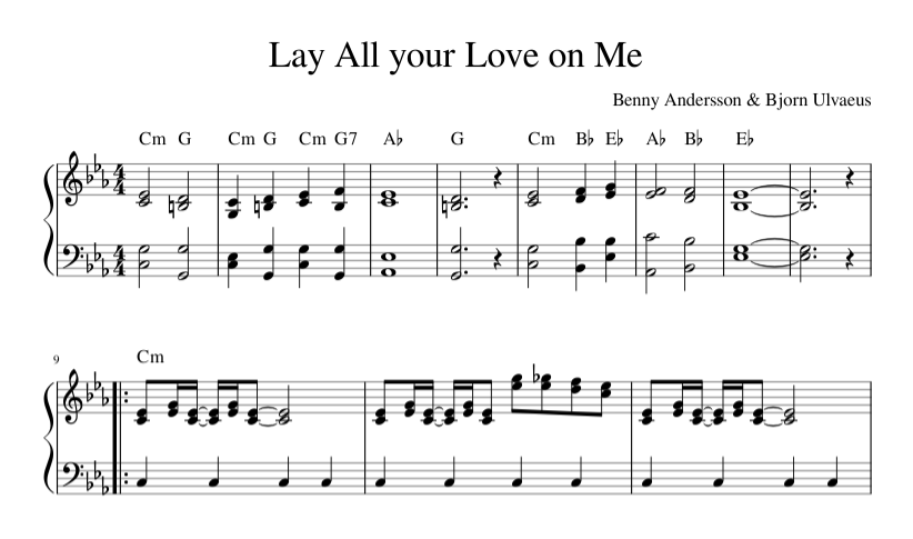 Bản nhạc – Abba Lay All Your Love On Me – Piano