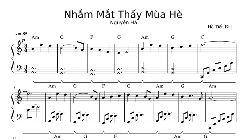 Bản Nhạc – Bài Hát Nhắm Mắt Thấy Mùa Hè – Piano