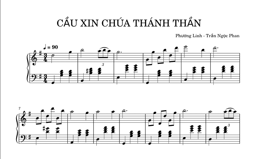 Bản Nhạc – Cầu Xin Chúa Thánh Thần – Piano