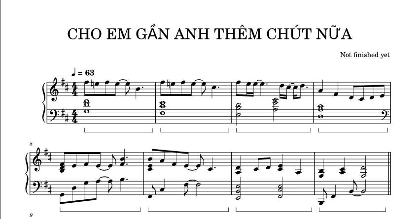 Bản Nhạc – Cho Em Gan Anh Them Mot Chut Nua – Piano