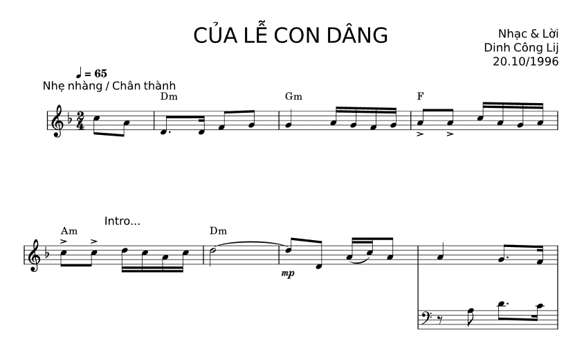Bản Nhạc - Của Lễ Con Dâng Pdf - Piano số lượng