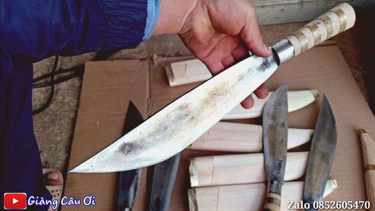 Cán dao thường làm từ gỗ, sừng hoặc kim loại, được chế tác chắc chắn để cầm nắm thuận tay.