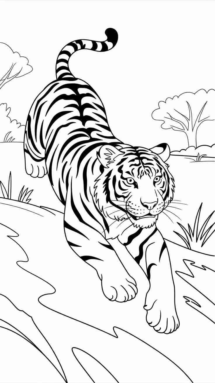 Các mẫu tranh tô màu con hổ thường được thiết kế với nhiều mức độ khác nhau, phù hợp với từng độ tuổi.