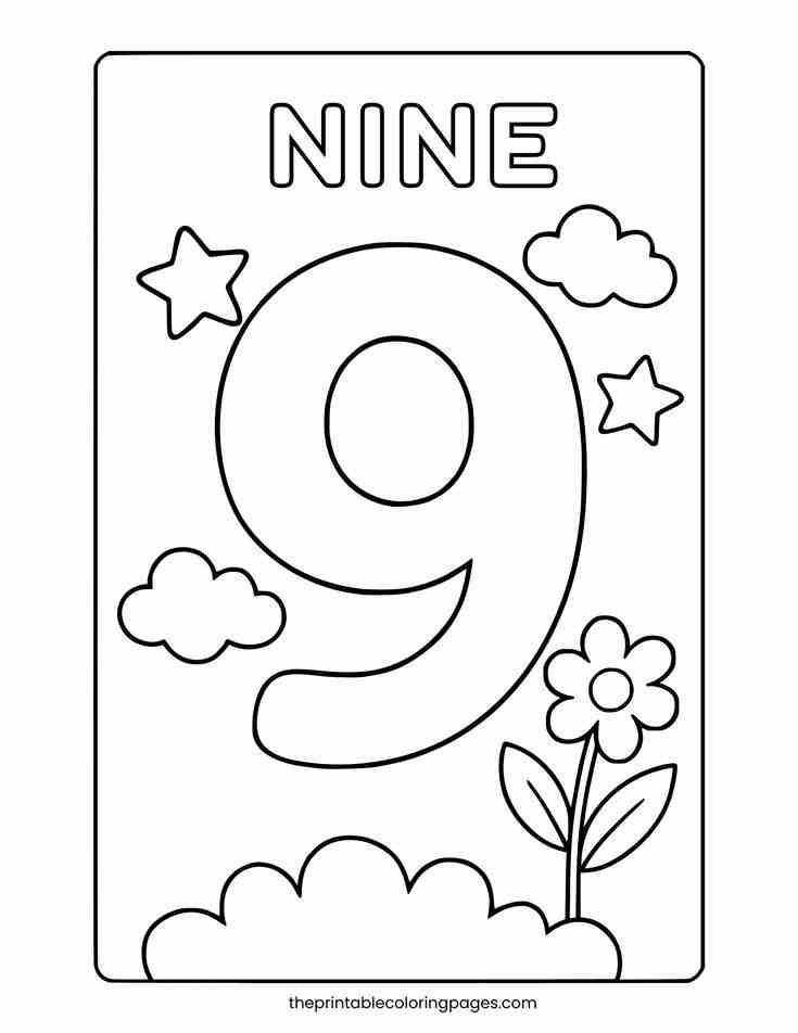 Nhiều tranh tô màu số 9 được kết hợp với các hình ảnh quen thuộc như chín con vật, chín quả bóng hoặc chín đồ vật sinh động. Bé vừa tô màu vừa đếm số lượng hình ảnh đi kèm với số 9.