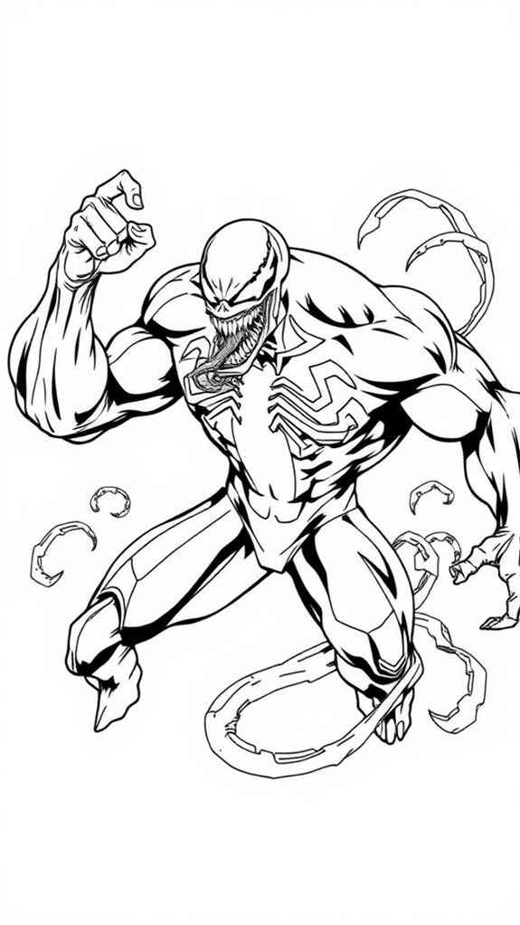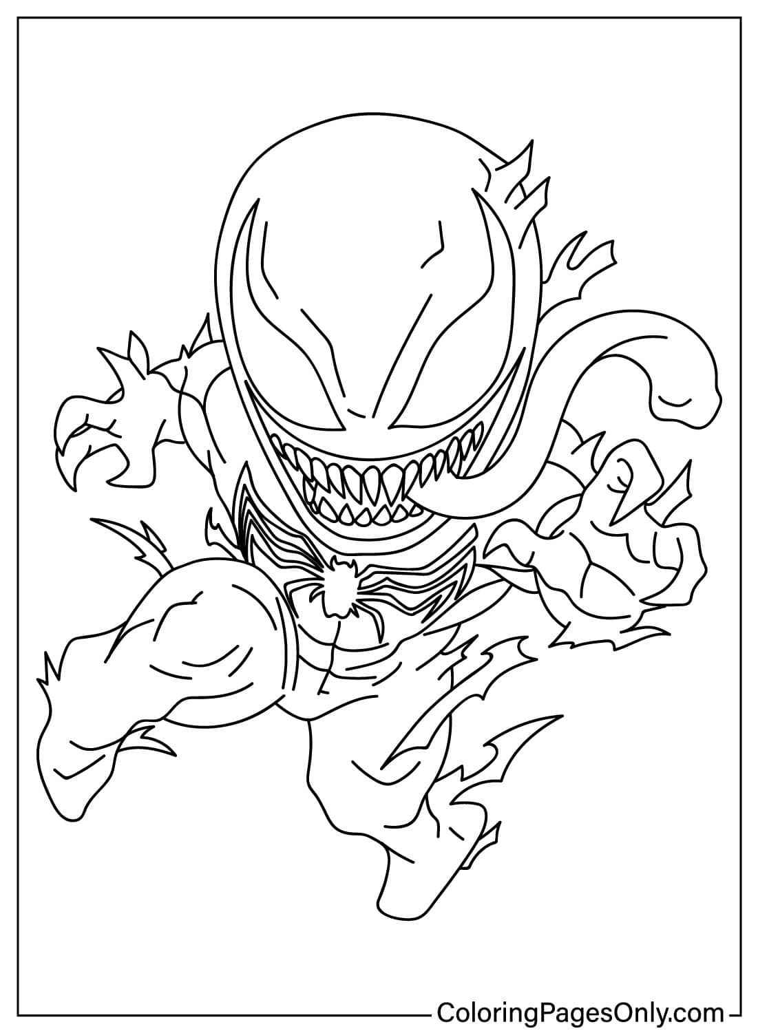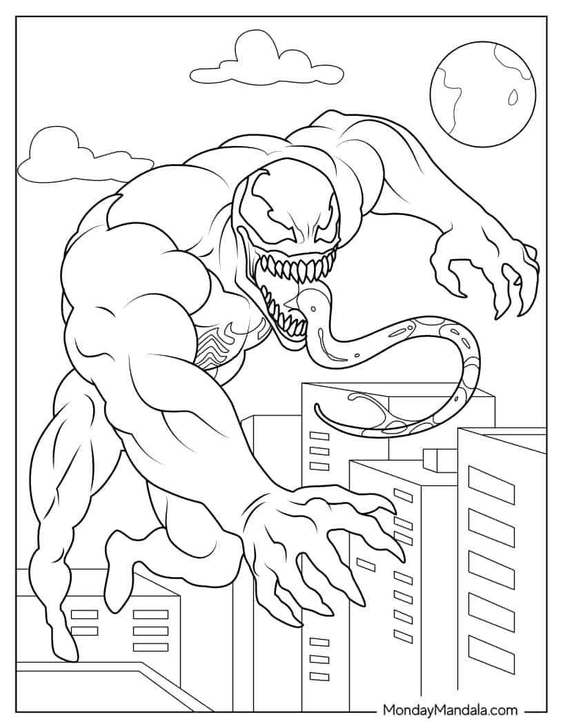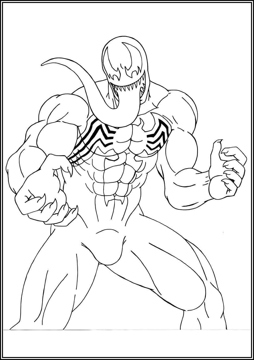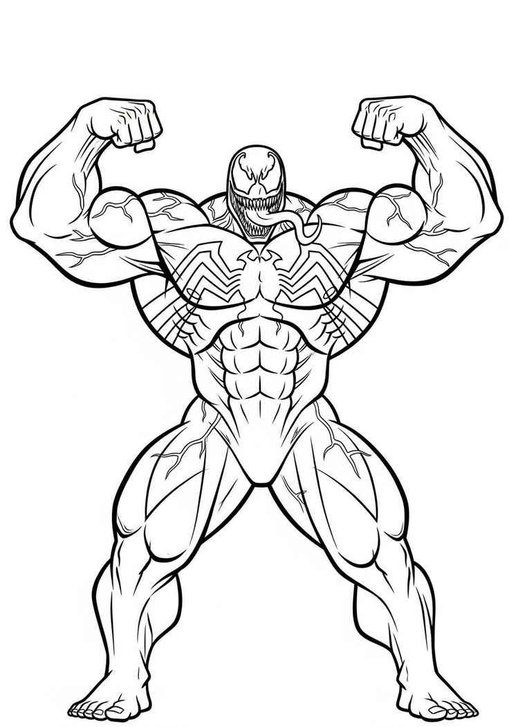 Hình ảnh Venom với cơ bắp mạnh mẽ, nụ cười đặc trưng và phong cách cá tính giúp trẻ cảm thấy hứng thú khi tô màu.