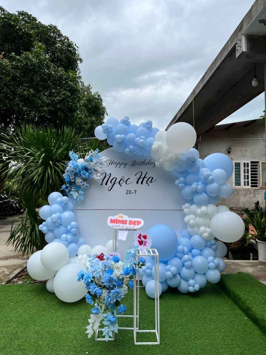 Bạn có thể sử dụng cổng bóng bay, bóng bay nổi trên mặt nước hoặc kết hợp nhiều kích thước để tạo điểm nhấn.