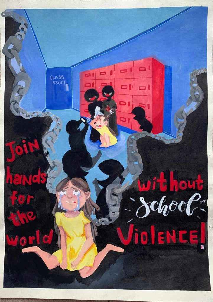 Vẽ bạo lực học đường là chủ đề tranh nhằm phản ánh vấn đề xã hội trong môi trường học tập. Những bức tranh giúp truyền tải thông điệp về sự đoàn kết và tôn trọng lẫn nhau. Đây là cách nâng cao nhận thức về tác hại của bạo lực học đường.