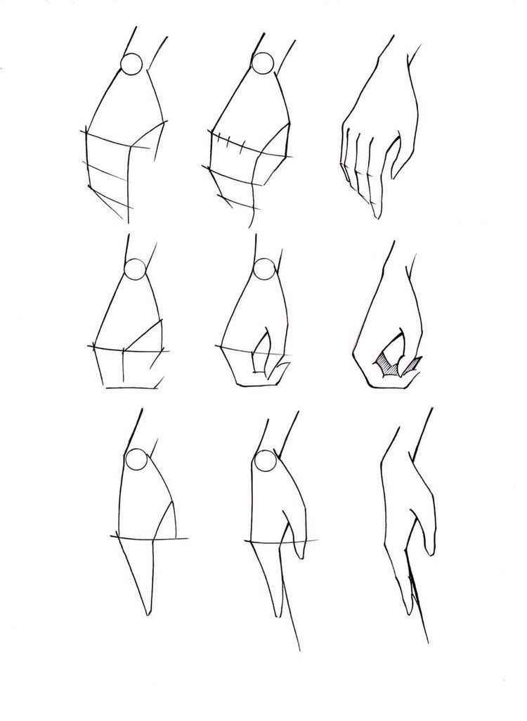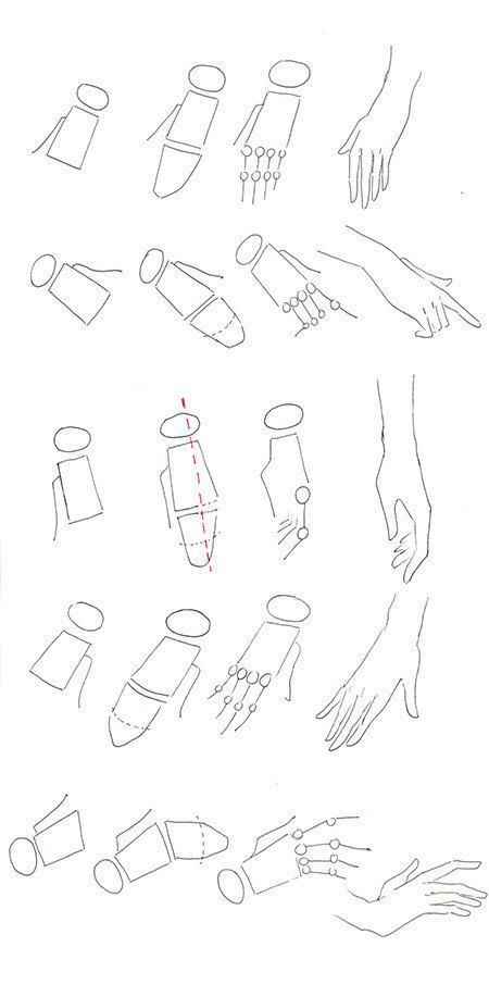 Khi phác thảo, vẽ tay anime thường bắt đầu bằng hình khối của lòng bàn tay trước.